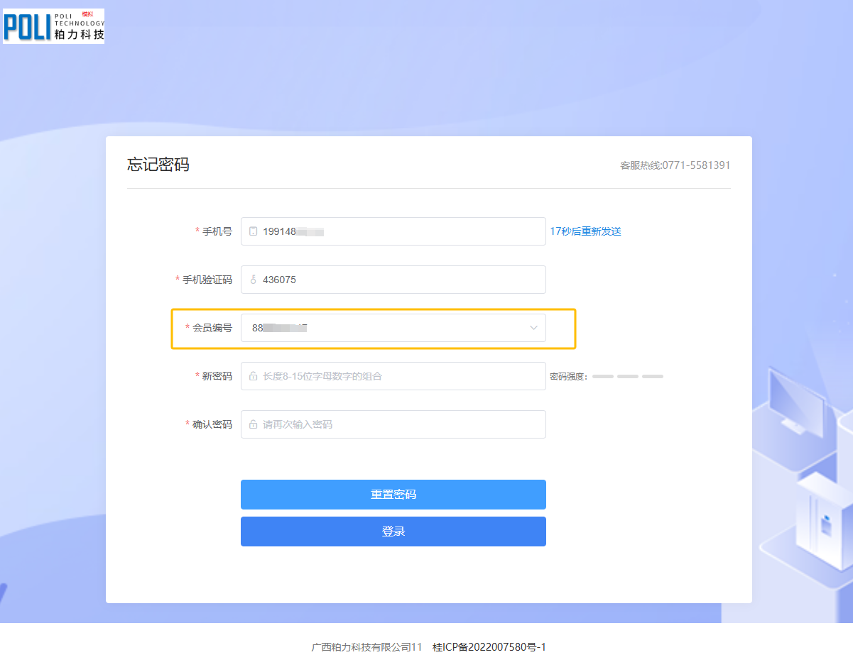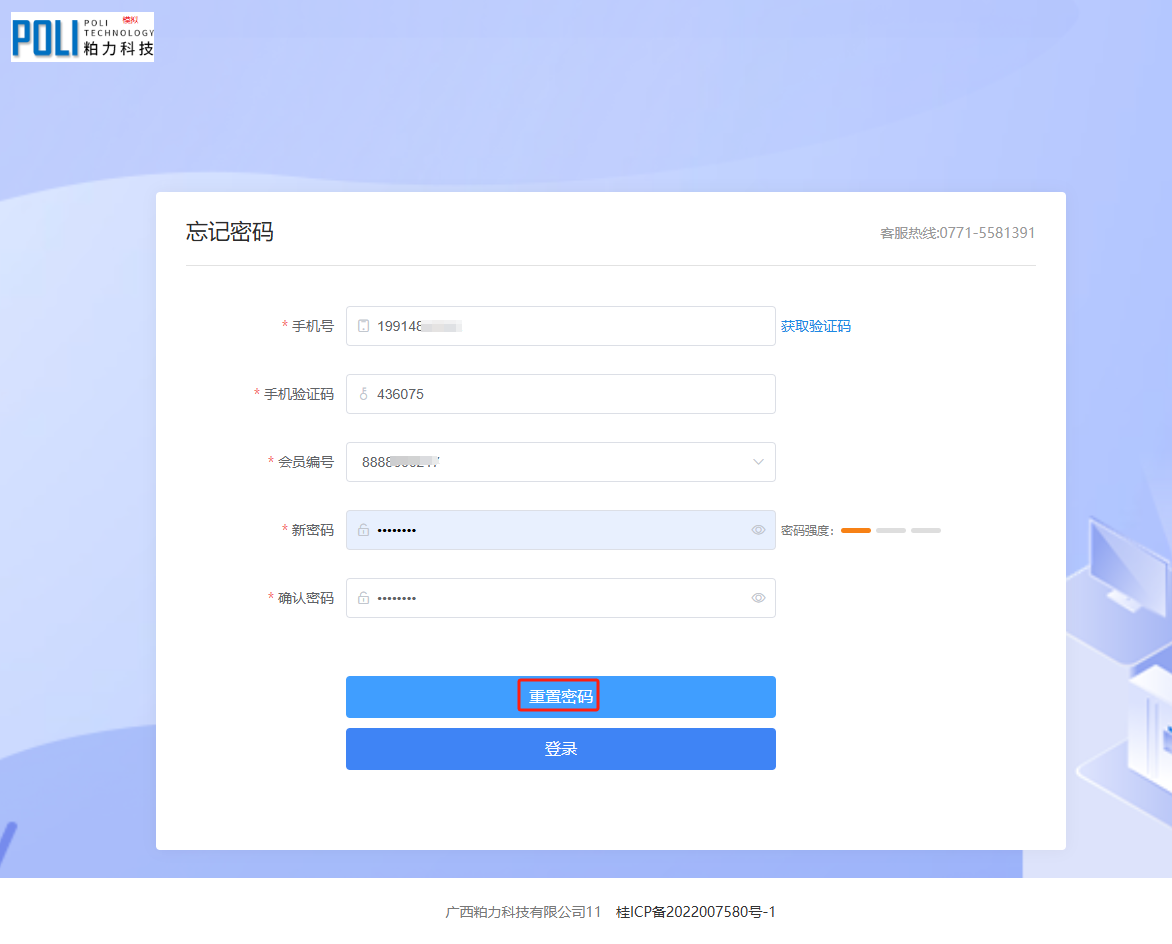 设置新的密码,并点击“重置密码”即完成密码重置。