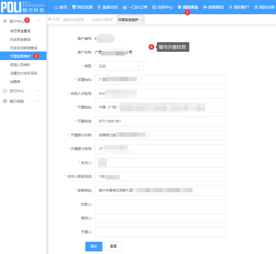 | 开票信息维护 | 企业名称、纳税人识别号、地址、电话、银行名称、银行账号 |